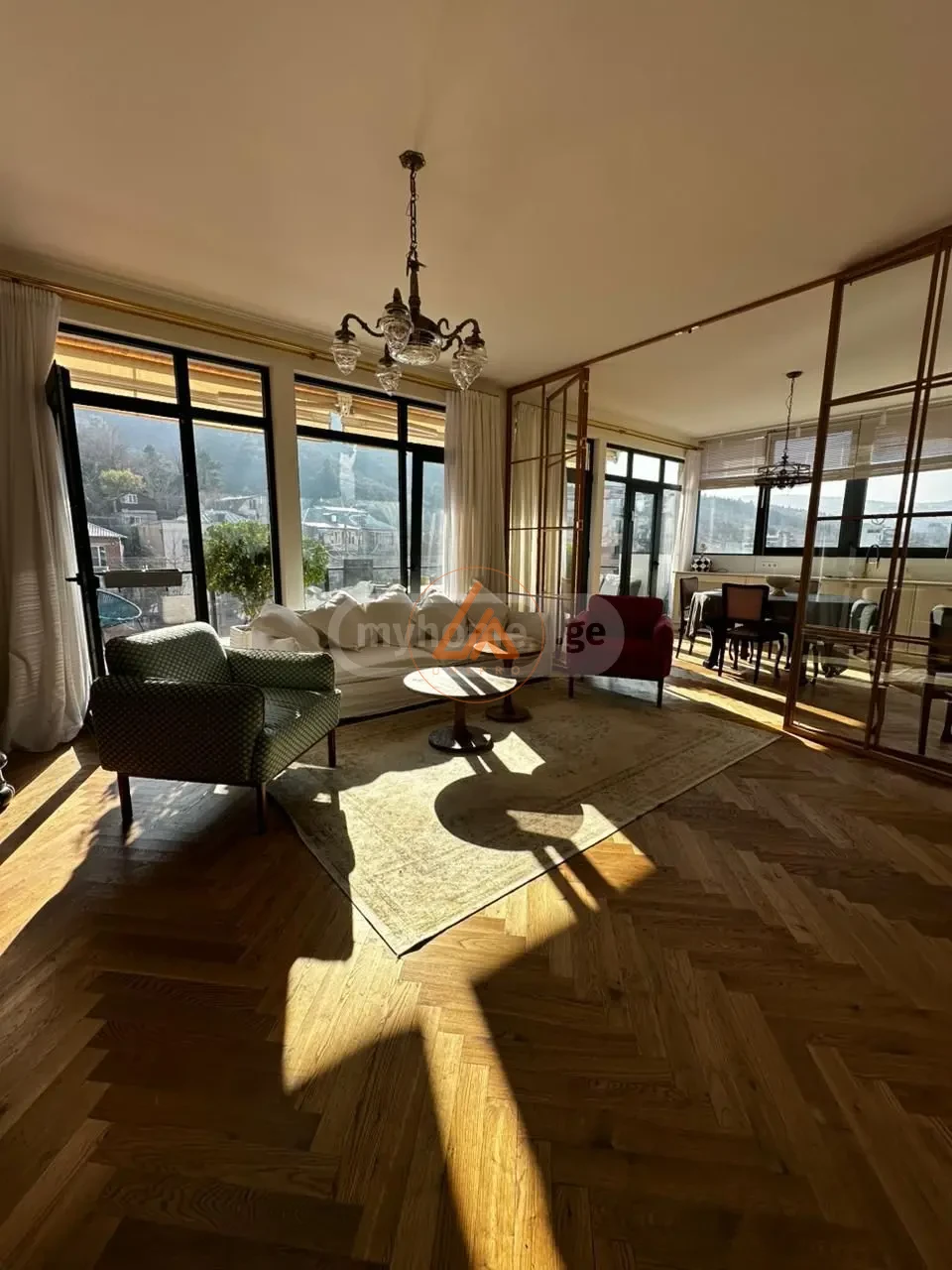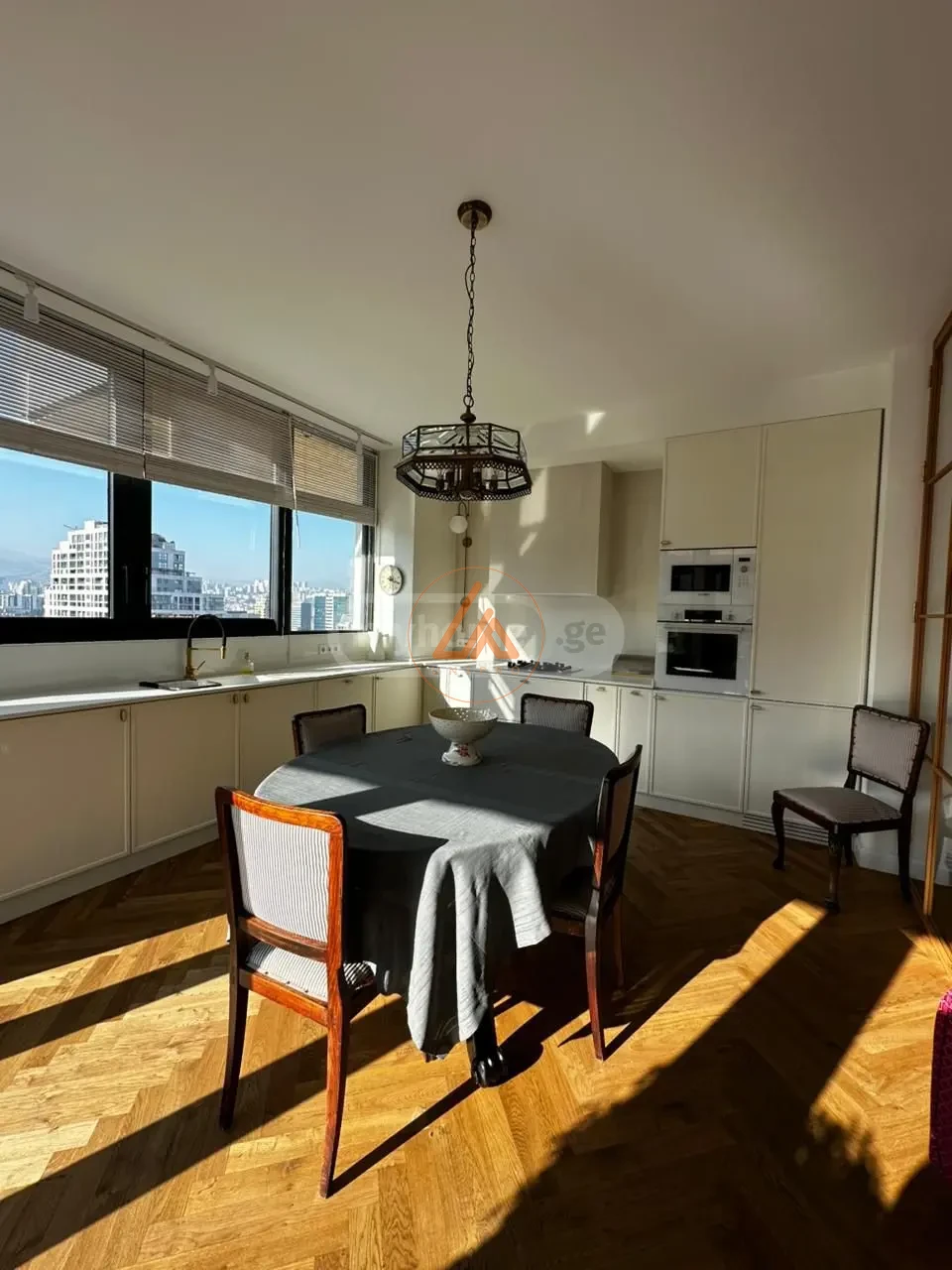 5-ოთახიანი ბინა 220 კვ.მ ფართობით, პრესტიჟულ ვაკის რაიონში, ტაბიძის ქუჩაზე, მე-9 სართულზე 10-სართულიან კორპუსში. ბინა გამოირჩევა ფართო დაგეგმარებით, რომელიც მოიცავს 3 საძინებელს, თითოეულს საკუთარი სველი წერტილით, 1 ოფისს და მისაღებ ოთახს სამზარეულოსთან ერთად.