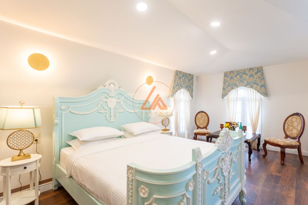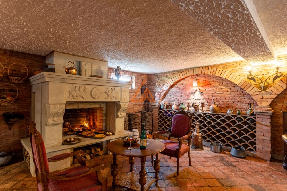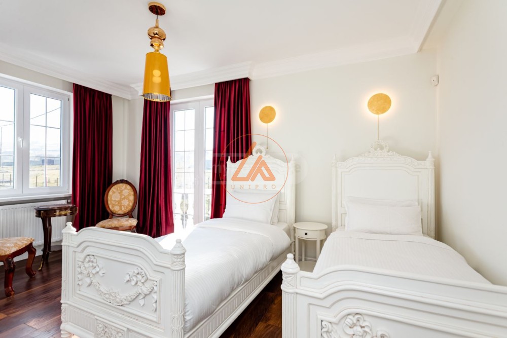 7 საძინებლიამი ( შვიდივე საკუთარი სააბაზანო ოთახით, აივნებით და ACთ) , დიდი მისაღები ოთახით, 90 კვ.მ მარნით პარკინგით 1200კვმ ეზო 4 სართულიანი საცხოვრებელი სივრცე შეადგენს 460კვმ