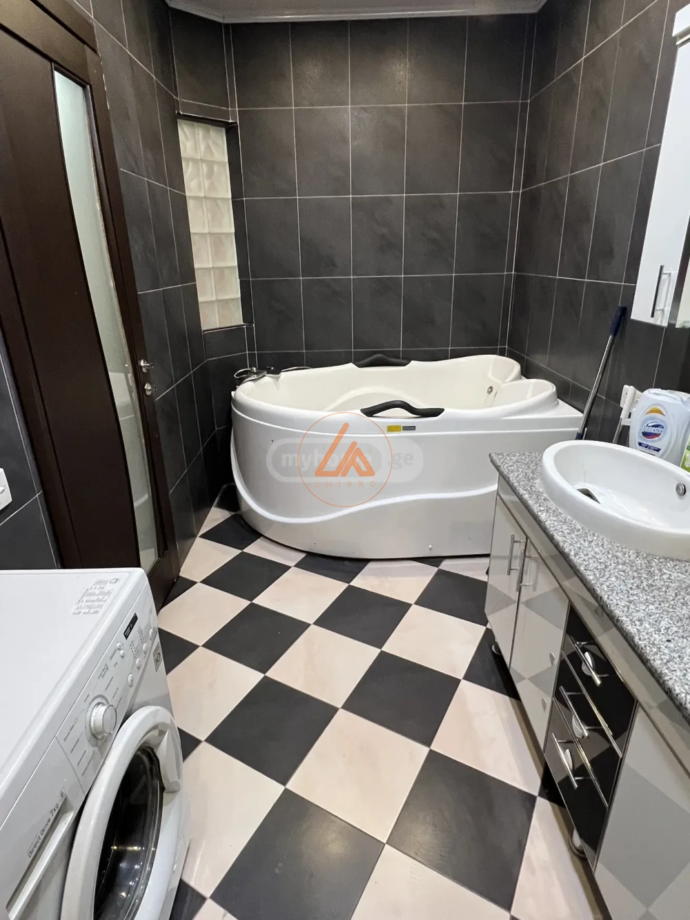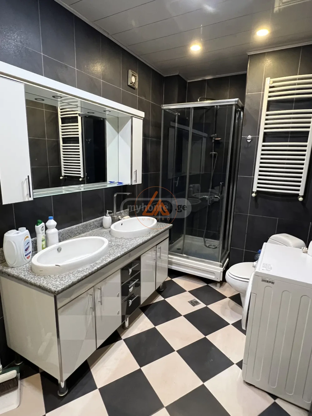 2 საძინებელი, სტუდიოს ტიპის სამზარეულო ყველანაირი ტექნიკით (მაცივარი, გაზი, გამწოვი, მიკროტალღური, ჭურჭლის სარეცხი მამქანა) მისაღები ოთახი, აბაზანა-ტვალეტი (სარეცხი მანქანა და ჯაკuzi), საკუჭნაო, 2 აივანი. ასევე სახლში არის ანტრესორი რომელიც არის კაბინეტის ტიპის ოთახი, შესაძლებელია ამ ოთახის საძინებლად გამოიყენება