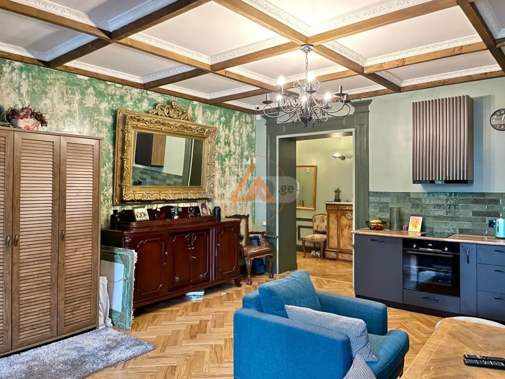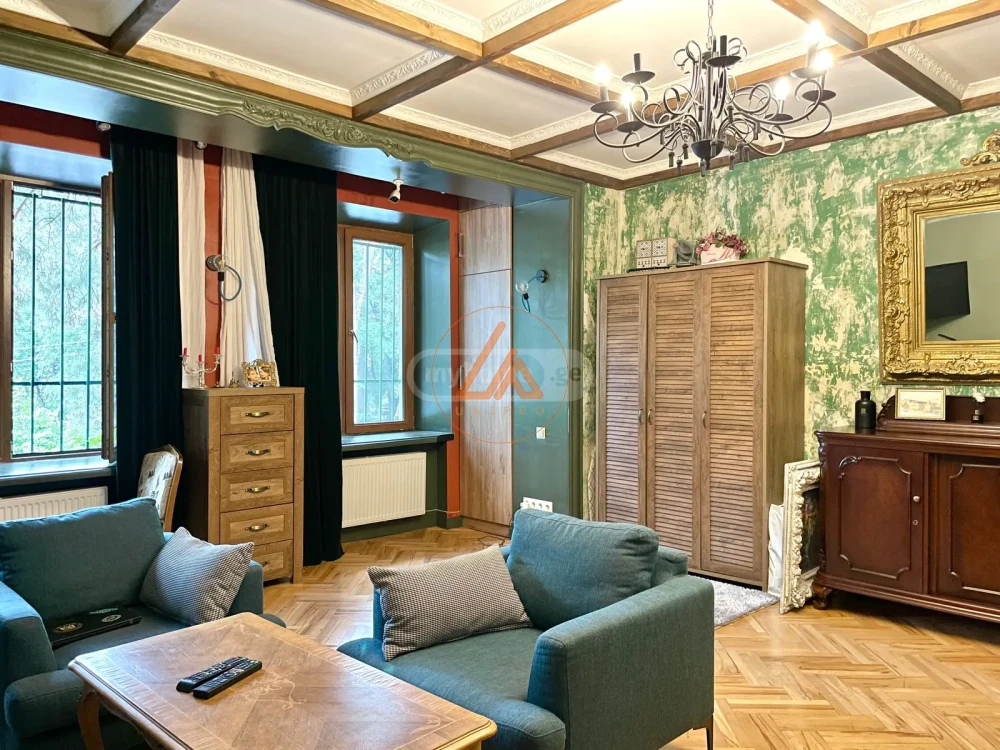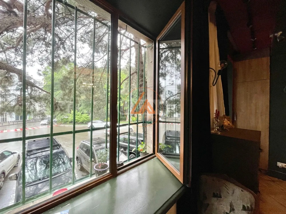 ვაკეში მრგვალ ბაღთან სტუდიოს ტიპის ბინა, ძალიან მაღალი პირველი სართული, ხედი პირდაპირ მრგვალ ბაღზე