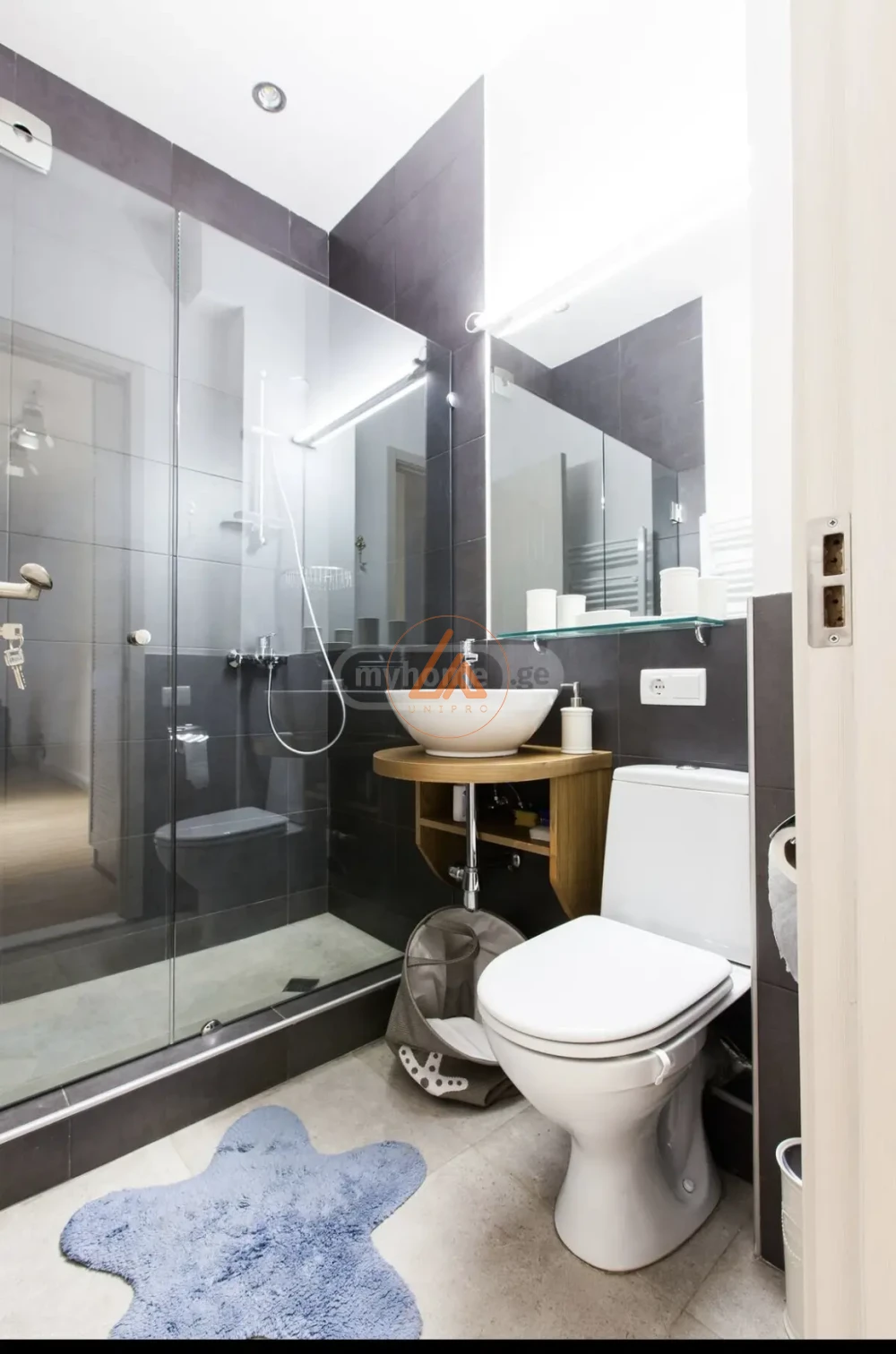 ერთი საძინებელი, ერთი სველი წერტილი; აივნით; ცენტრალური გათბობის სისტემა; ავეჯით და ტექნიკით აღჭურვილი