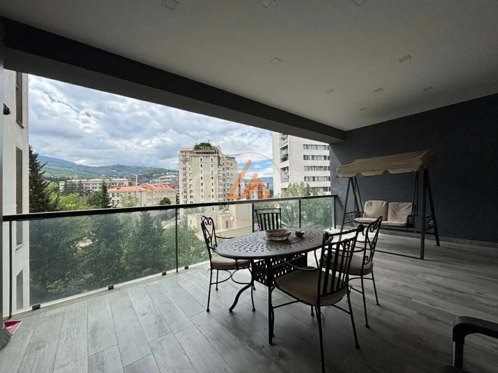 ქირავდება კეთილმოწყობილი ბინა აქსისის კორპუსში, დიდი ვერანდით ხედით წყნეთზე.
