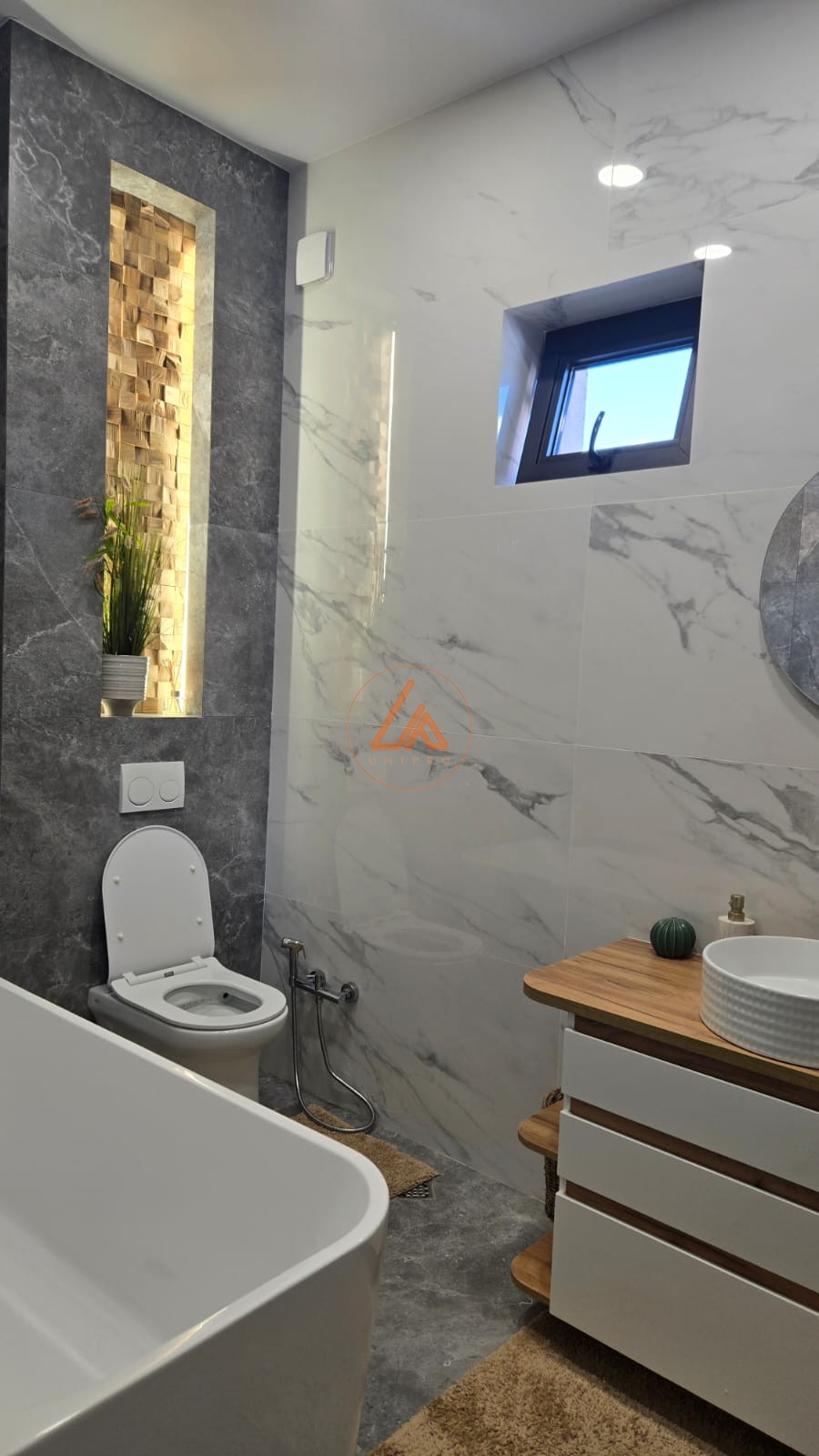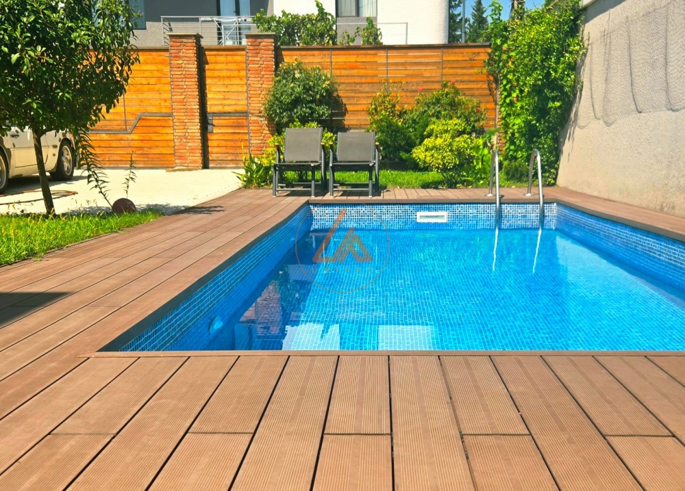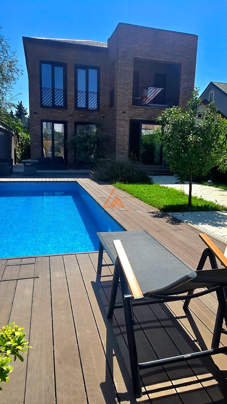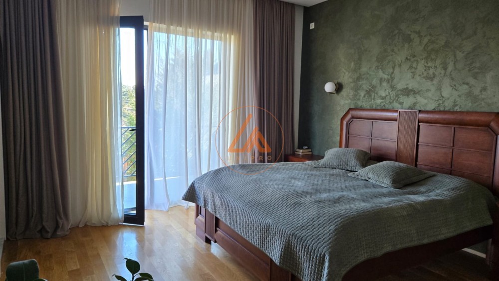სახლი აშენებულია უმაღლესი ხარისხის მასალებით. გამოყენებულია ენერგოეფექტური ალუმინის კარ-ფანჯრები და შესრულებულია სრულყოფილი თბოიზოლაცია, რაც უზრუნველყოფს კომფორტს და დაბალ კომუნალურ ხარჯებს. ინტერიერში ძირითადად გამოყენებულია ბუნებრივი მასალები: იატაკი მოპირკეთებულია მარმარილოთი და მუხის პარკეტით.