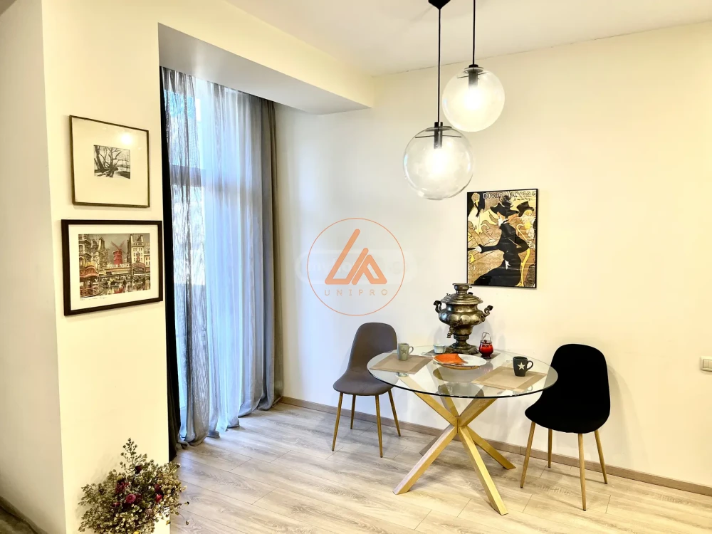 9 სართულიანის 4 სართულზე.ბინა არის 2 ოთახიანი , 1 საძინებლით.ბინას აქვს 2 აივანი, არის მზიანი. ბინაში არიზ ყველა საჭირო კომფორტი.სარეცხი მანქანა, კონდინციონერი, ჭურჭლის სარეცხი მანქანა, მიკროტალღური ღუმელი, ახალი ავეჯი, ჭურჭელი, თეთრეული.