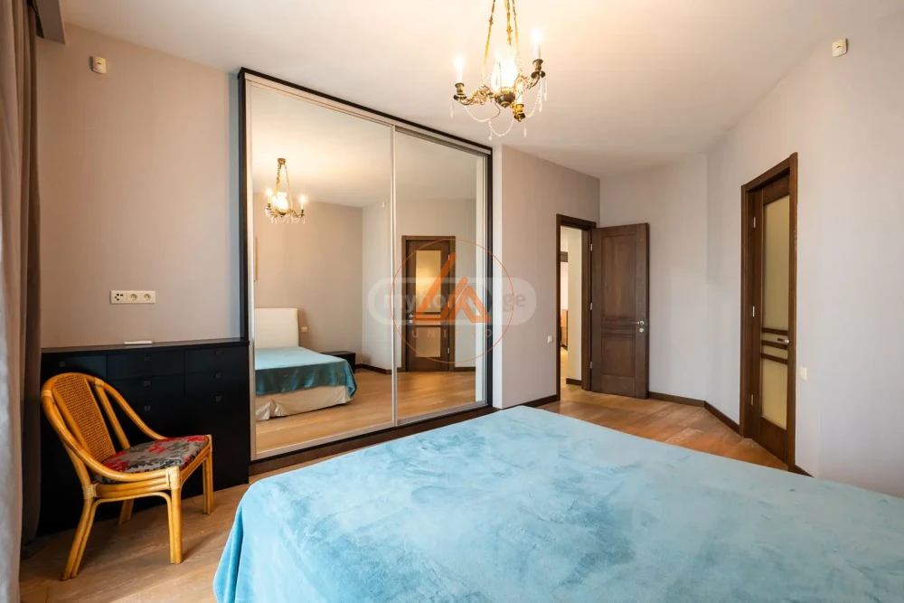 ქირავდება 210 კვ.მ. 5 ოთახიანი ბინა ვაკეში ჭავჭავაძის გამზირის მიმდებარე ტერიტორიაზე. ბინა არის სრულად გარემონტებული, კორპუსი ახალი აშენებული, მოწესრიგებული, აქვს დამოუკიდებელი 3 საძინებელი, 1 საძინებელში მოწყობილია კაბინეტი, თუმცა შესაძლებელია საძინებლად გამოყენება, 2 საძინებელი მასტერბედრუმი, 1 საძინებელს ასევე აქვს საკუთარი საგარდერობე ოთახი , დიდი, ნათელი მისაღები ოთახი, ცალკე 1 სველი წერტილი სტუმრებისთვის, იზოლირებული სამზარეულო, აივნებიდან ხედი კორტებზე