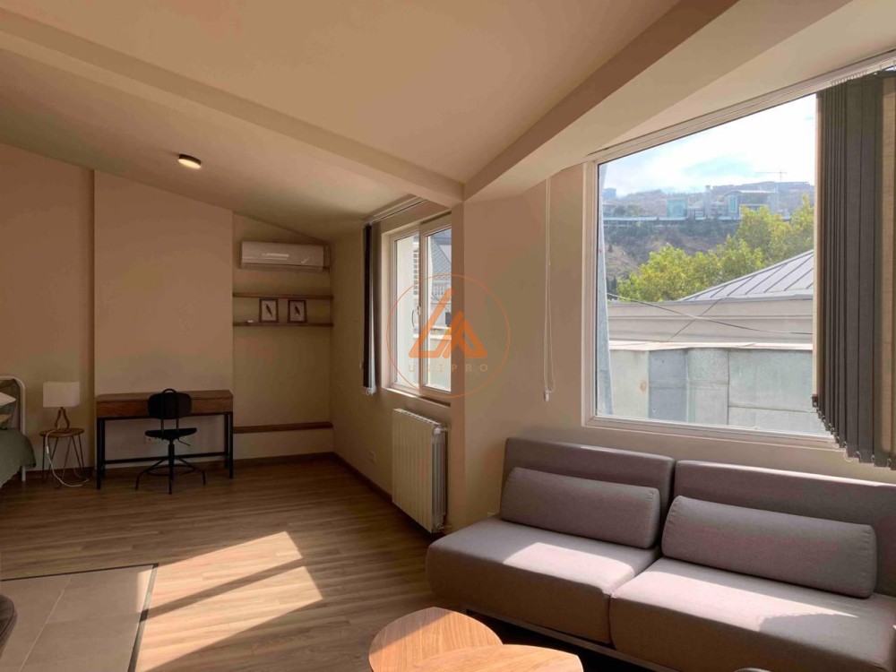 ✨ იყიდება სტუდიოს ტიპის მანსარდული ბინა ლეონიძეის ქუჩაზე, მთაწმინდის ყველაზე მოთხოვნად ტურისტულ ლოკაციაზე, ულამაზესი ხედით ქალაქზე. ბინა სრულად აღჭურვილია ყველა საჭირო საცხოვრებელი ინვენტარითა და ტექნიკით — მზად არის კომფორტული ცხოვრებისათვის. მდებარეობს თავისუფლების მეტროდან სულ 5 წუთის სავალზე, იდეალური ლოკაცია მშვიდი და მოსახერხებელი ცხოვრებისთვის.