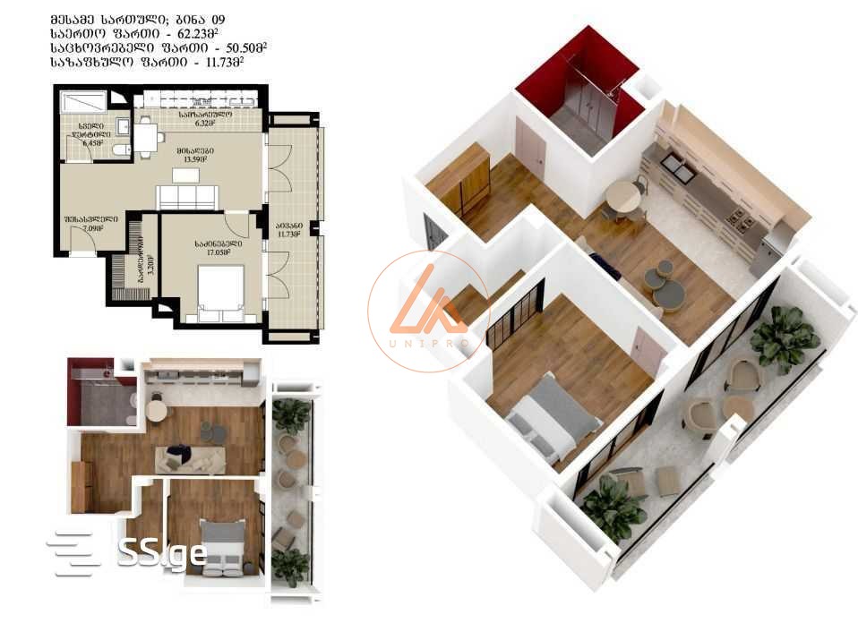იყიდება ახალი აშენებული ბინა 62 კვ.მ ფართობით, რომელიც მდებარეობს 6-სართულიანი კორპუსის მეოთხე სართულზე. ბინა შედგება ორი ოთახისგან, რომელთაგან ერთი საძინებელია. ბინას არ აქვს აივანი. ახალი აშენებული სტატუსი უზრუნველყოფს თანამედროვე და კომფორტულ საცხოვრებელ გარემოს. სივრცე იდეალურია როგორც ახალგაზრდა წყვილისთვის, ასევე მათთვის, ვინც აფასებს სიმშვიდესა და მყუდროებას. ნათელი და ჰარმონიული განლაგება ქმნის სასიამოვნო ატმოსფეროს ყოველდღიური ცხოვრებისათვის.