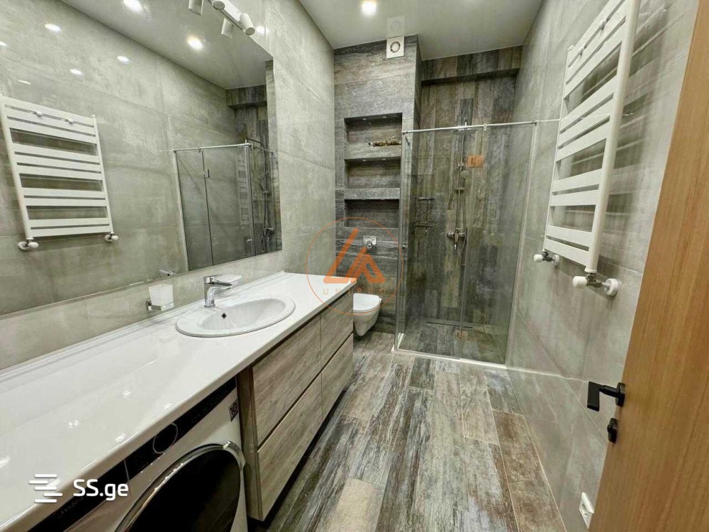 ქირავდება პრემიუმ ხარისხის, სრულიად ახალი და უცხოვრებელი ბინა, შესრულებული თანამედროვე დიზაინერული რემონტით. ბინა სრულად არის აღჭურვილი უმაღლესი ხარისხის ავეჯითა და ყველა საჭირო თანამედროვე ტექნიკით. ინტერიერი შექმნილია კომფორტისა და ესთეტიკის იდეალური ბალანსით. იდეალური არჩევანია მათთვის, ვინც ეძებს მაღალ სტანდარტს, სიმშვიდესა და ხარისხს. კორპუსს გააჩნია ორი ლიფტი, კონსიერჟე, მოწესრიგებული სადარბაზო, შიგა გამწვანებული ეზო საბავშვო გასართობებით. მომდევნო წელს იხსნება კორპუსის საცურაო აუზი და სავარჯიშო დარბაზი.