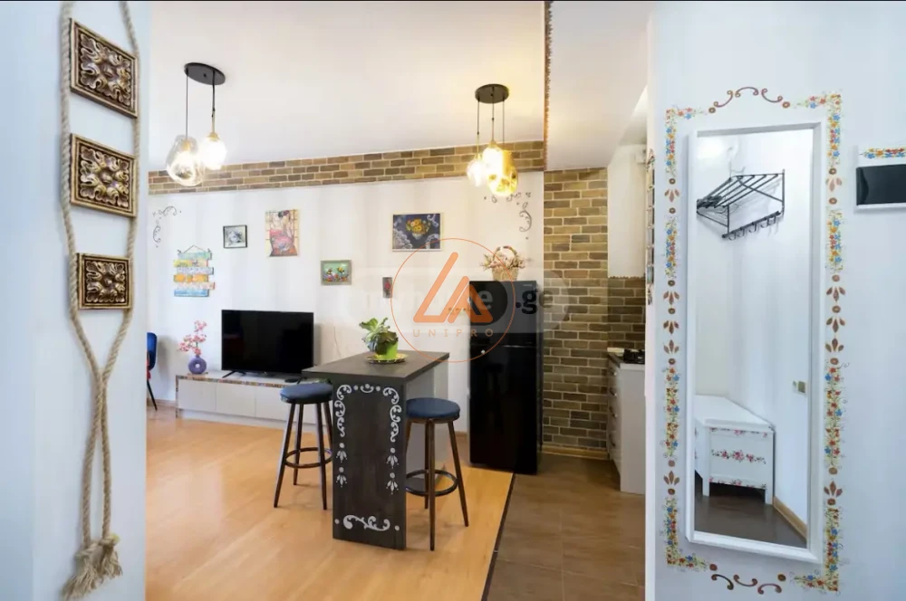 ბინა მდებარეობს მე-3 სართულზე და აღჭურვილია ყველა საჭირო ავეჯით, ტექნიკით, ჭურჭელითა და თეთრეულით. დაცული სადარბაზო, კოდი კარებზე და კამერები. იდეალურია მათთვის, ვისაც კომფორტული და თანამედროვე საცხოვრებელი სურს.