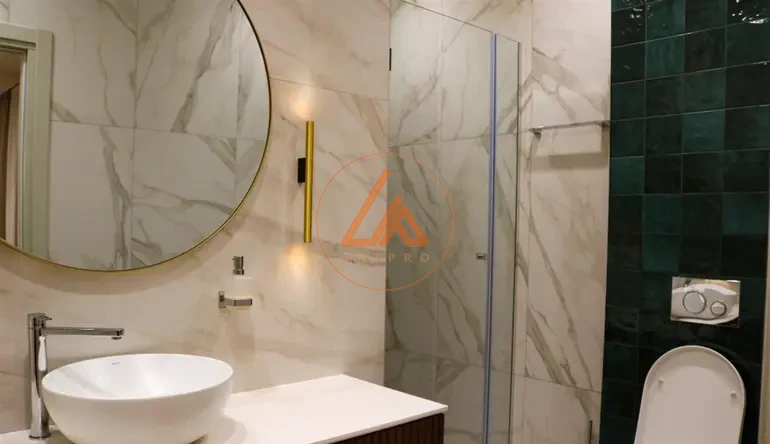 სასწრაფოდ!! იყიდება ახალი აშენებული სახლი სასამართლოსთან, ბარათაშვილის ქ. საცხოვრებელი ფართი: 500მ2 ეზო: 1100მ2 10 ოთახი, 6 საძინებელი, 1 მასტერი, იზოლირებული მისაღები და სამზარეულო, ტექნიკური ოთახი. სახლი არის მაღალი ხარისხის მასალებით გარემონტებული, მოპირკეთებულია ბუნებრივი ქვით, დამონტაჟებულია ცენტრალური კონდიცირების სისტემა, იყიდება სრული ტექნიკით და ავეჯით. აუზი არის მაღალი ხარისხის მოზაიკით მოპირკეთებული და აქვს ფილტრაციის სისტემა. ფასი: 1 550 000 აშშ დოლარი