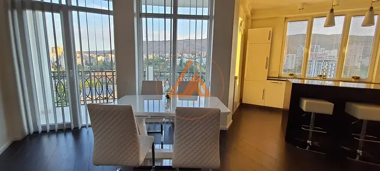ქირავდება ძალიან ლამაზი ხედით, მზიანი და ნათელი ბინა. კეთილ მოწყობილ დაცულ კორპუსში. კოსტავას ქუჩაზე, ტელევიზიის გვერდით. ბინის საერთო ფართია 105 კვ.მ. დიდი სტუდიოს ტიპი მისაღებით, 2 საძინებლით და 2 სველი წერტილით, ვერანდით და აივნით, სათავსოებით, თანამედროვე ტექნიკით და ავეჯით სრულად გაწყობილი. მისაღები ოთახი/სტუდიო 50კვ.მ, ორი საძინებელი 16 - 16კვ.მ, სველი წერტილები 5 და 3 კვ.მ. ვერანდა და აივანი 8 და 2 კვ.მ, შემოსასვლელი 5 კვ.მ. ტექნიკა: ტელევიზორები ყველა ოთახში, კონდინციონერები, ჩაშენებული მაცივარი, სარეცხი მანქანა, ჩაშენებული ჭურჭლის სარეცხი მანქანა, გაზქურა, ჩაშენებული ელექტრო და მიკრო ტალღური ღუმელები, ყველა საჭირო ჭურჭელი და თეთრეულით. ფასში შედის კვირაში ერთხელ ბინის დალაგება.