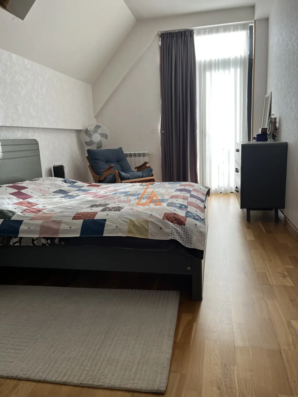 იყიდება 5 ოთახიანი კერძო სახლი, 4 საძინებლით, დიდი მისაღებით, იზოლირებული სამზარეულოთი, 2 სველი წერტილით, 2 აივნით (ყველა ოთახი გადის აივნებზე) და 1 ვერანდით. სახლი აშენებული, გარემონტებული და მოპირკეთებულია ეკოლოგიურად სუფთა მასალით. აქვს იტალიური კრამიტის გადახურვა, ალუმინის კარ-ფანჯარა, კედლები აშენებულია „იტონგის“ ბლოკით, იატაკი მოპირკეთებულია ნატურალური ევროპული ხის პარკეტით. სახლის პირველ სართულზე განლაგებულია: სამზარეულო, მისაღები, 1 საძინებელი, საპირფარეშო და საქვაბე ოთახები. სახლის მეორე სართულზე განლაგებულია: 3 საძინებელი და საპირფარეშო. სახლს ასევე აქვს მანსარდი ერთი დიდი ოთახით და დიდი საკუჭნაო ოთახით. ეზო იყოფა 2 ნაწილად: წინა და უკანა ეზო. წინა ეზოში არის 3 მანქანის პარკინგის ადგილი და კალათბურთის სათამაშო სივრცე. უკანა ეზოში არის კაპიტალურად მოწყობილი ბასეინი. ბასეინის სიღრმე 1.5 მ, სიგრძე 7 მ, სიგანე 4 მ.. ბასეინის პერიმეტრი მოპირკეთებულია ტრავერტინის ქვით, ხოლო ღობის გასწვრივ გაშენებულია „გოლდ რაიდერის“ ჯიშის ნაძვი, ჯამში 60 ძირი.