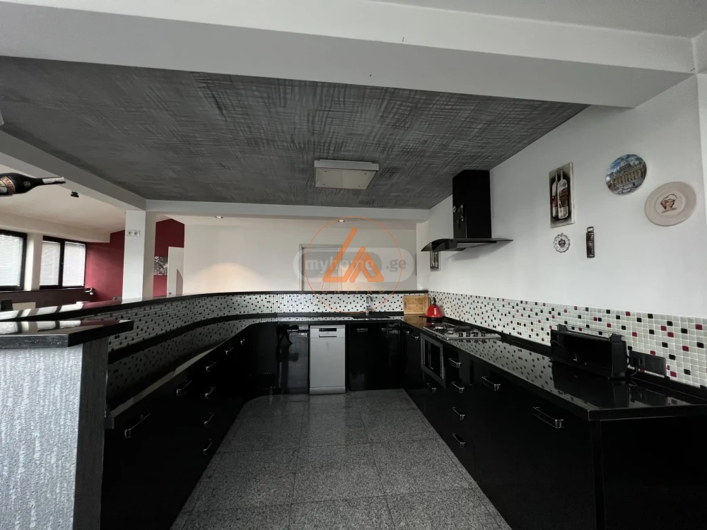 • შედგება სამი სართულისგან (400მ2) • პირველი სართული მოიცავს 120მ2 ვერანდას და ზამთრის ბაღს. (საზიარო სივრცე) • მეორე სართულზე არის დიდი მისაღები, სამზარეულო, ტუალეტი და დიდი ოთახი, მინის ვიტრაჟებით • მესამე სართული სტუდიოს ტიპის დიდი სამზარეულო და გაშლილი სივრცე მისაღები. ამავე სართულზეა მცირე ზომის ოთახი (აქამდე გამოყენებული გარდერობად) + ტუალეტი • მესამე სართულიდან მცირე ზომის კიბით ასასვლელი კიდევ 1 დამატებით ოთახში • 3 საშუალო ზომის აივანი და პატარა ეზო 60 მ2 • ფოტოებზე ნაჩვენები ავეჯი სურვილის შემთხვევაში რჩება