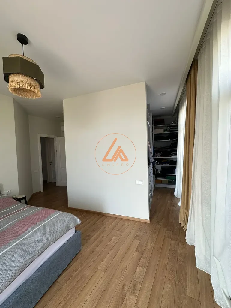 ბინა მოიცავს 2 საძინებელს (მათ შორის მასტერ ბედრუმს საკუთარი აბაზანითა და გარდერობით), ფართო მისაღებს და 2 აბაზანას. ყველა ოთახიდან არის გასასვლელი 25 კვ.მ ტერასაზე. სამზარეულო აღჭურვილია ჩაშენებული Kuppersberg-ის ტექნიკით. ბინაში დამონტაჟებულია კარის სენსორები და ვიდეოკამერები. ფასში შედის 22 კვ.მ პარკინგის ადგილი. იდეალურია როგორც საცხოვრებლად, ისე საინვესტიციოდ.