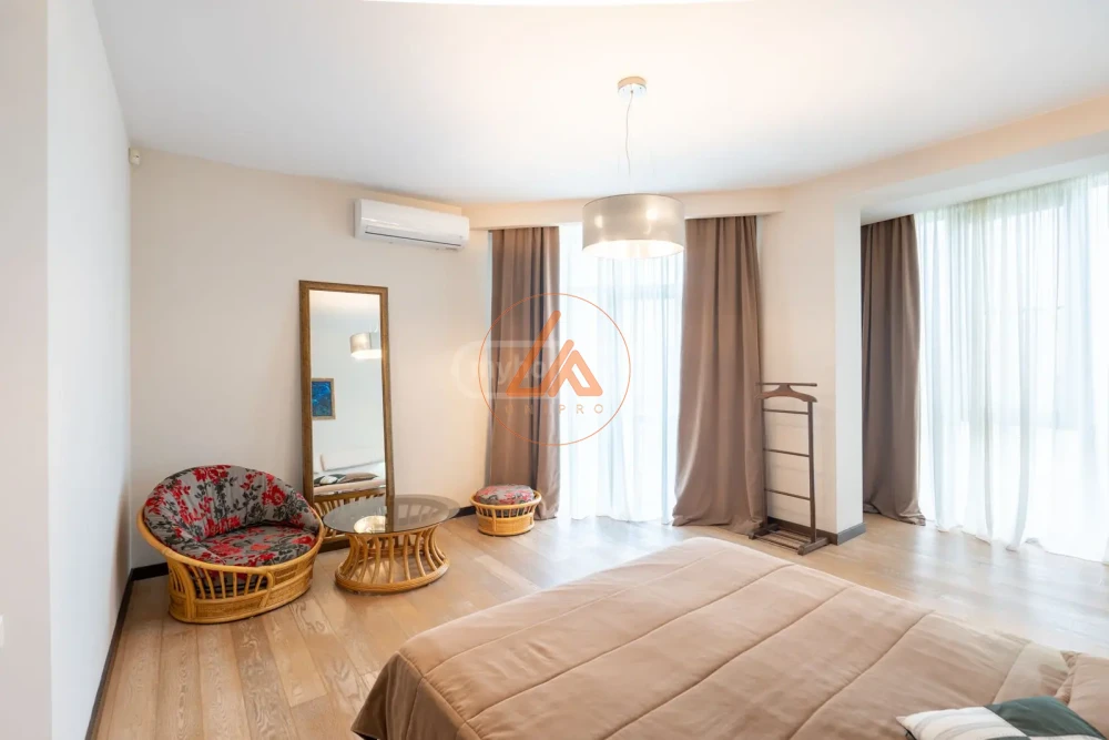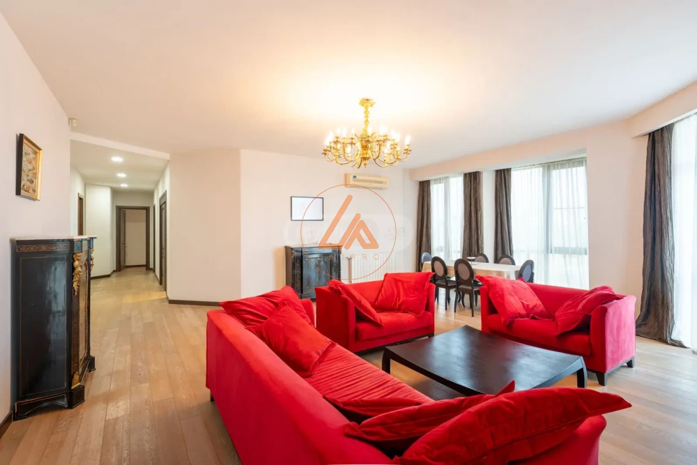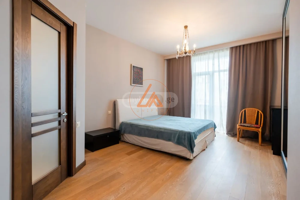 ქირავდება 210 კვ.მ. 5 ოთახიანი ბინა ვაკეში ჭავჭავაძის გამზირის მიმდებარე ტერიტორიაზე. ბინა არის სრულად გარემონტებული, კორპუსი ახალი აშენებული, მოწესრიგებული, აქვს დამოუკიდებელი 3 საძინებელი, 1 საძინებელში მოწყობილია კაბინეტი, თუმცა შესაძლებელია საძინებლად გამოყენება, 2 საძინებელი მასტერბედრუმი, 1 საძინებელს ასევე აქვს საკუთარი საგარდერობე ოთახი , დიდი, ნათელი მისაღები ოთახი, ცალკე 1 სველი წერტილი სტუმრებისთვის, იზოლირებული სამზარეულო, აივნებიდან ხედი კორტებზე