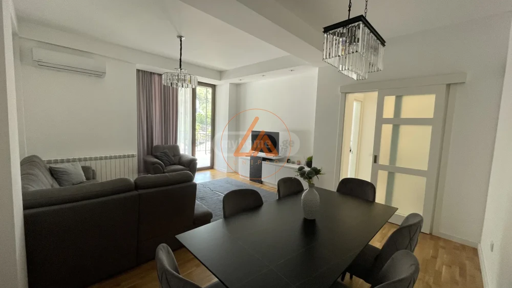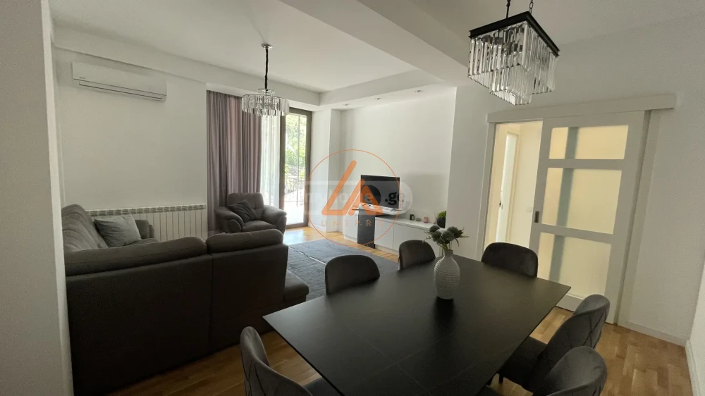 ქირავდება 145 მ² ბინა საბურთალოზე, ტიციან ტაბიძის ქუჩაზე. ახალი აშენებული, თანამედროვე დიზაინით. ბინა არის ნათელი და მყუდრო. არ დაიშვება შინაური ცხოველი.