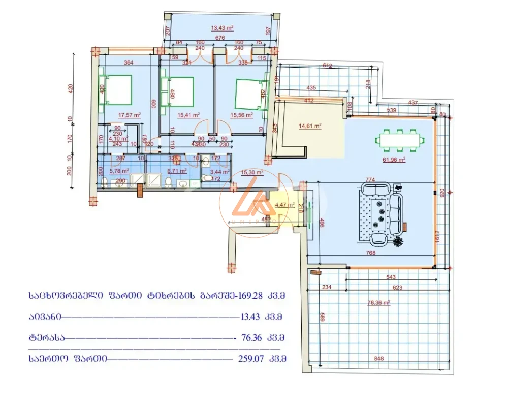 იყიდება ბინა ახალაშენებულ კორპუსში, რომელიც მდებარეობს მე-11 სართულზე. ბინის საერთო ფართობი შეადგენს 259 კვ.მ-ს და მოიცავს 4 ოთახს, მათ შორის 3 საძინებელს. ბინა გამოირჩევა თანამედროვე დაგეგმარებითა და ახალი შენობის უპირატესობებით. სივრცე უზრუნველყოფს კომფორტულ და მყუდრო გარემოს ოჯახისთვის. აქ შეგიძლიათ შექმნათ თქვენი ოცნების სახლი, სადაც თითოეული ოთახი ნათელი და ჰაერია. ბინა იდეალურია მათთვის, ვინც აფასებს სივრცესა და ახალ გარემოს.