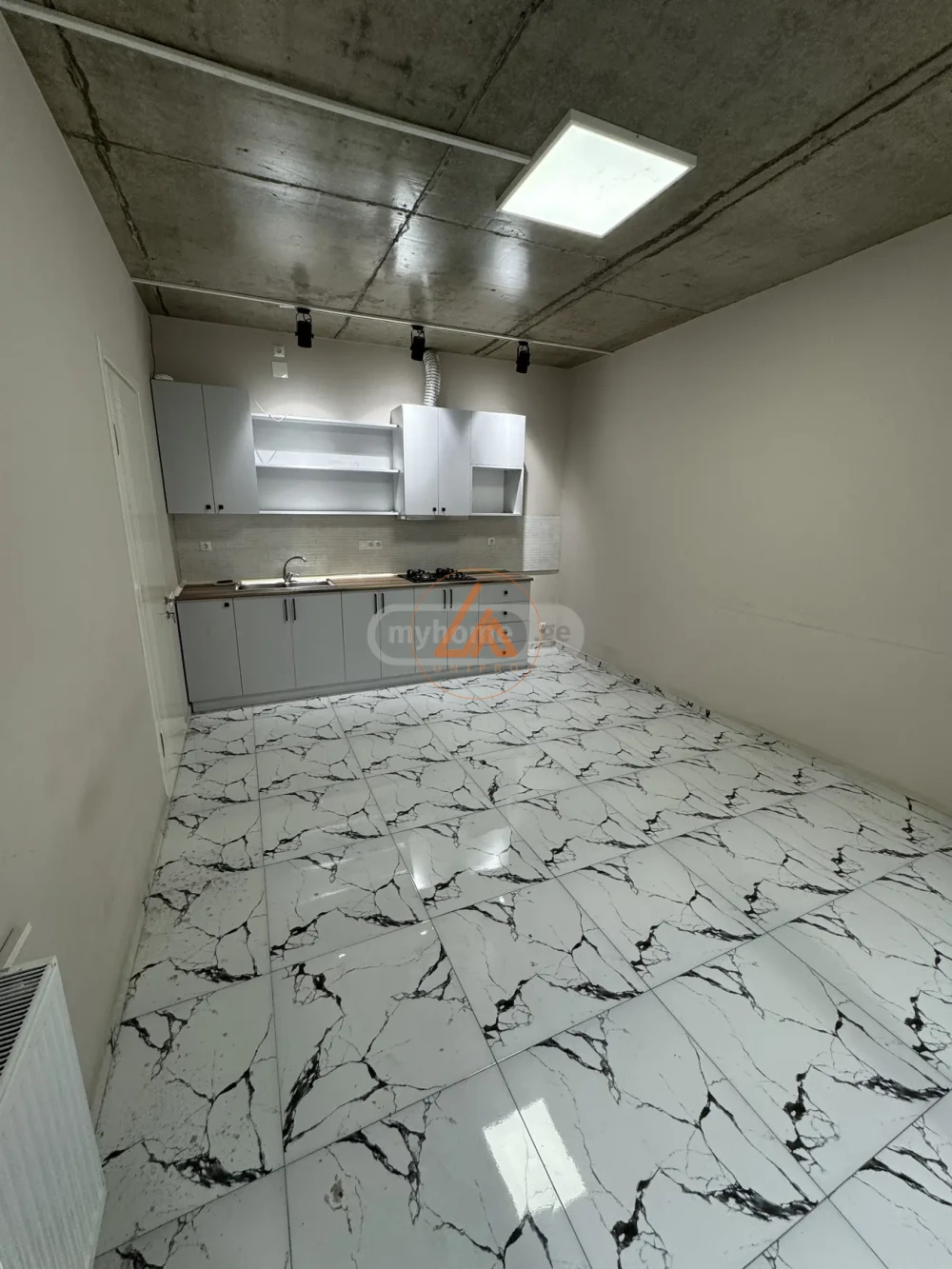 არის საოფისე ფართი. აქვს სამზარეულო, სველი წერტილი და სათავსო ოთახი. არის გარემონტებული. შეგიძლიათ გამოიყენოთ როგორც საოფისე საქმიანობისთვის ასევე თქვენივე სასურველი საქმიამობისთვის. კედლები არის გადატიხრული ე.წ გიფსკარდონით, აივნებზე გაკეთებულია გასაღები შუშები.