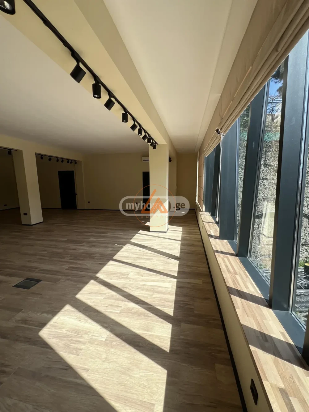 ფართი მოწყობილია საოფისედ: • გათვლილია 10⁃12 ადამიანზე. • ალუმინის ენერგოეფექტური ვიტრაჟული სისტემა, სავინტილაციო ავტომატური გაღებებით. • ფასადის შიდა მხარეს დამონტაჟებულია ხის რაფა, რომლის გამოყენება შესაძლებელია დამატებითი სამუშაო/დასასვენებელი სივრცის შესაქმნელად. • იატაკში ჩამონტაჟებულია სპეციალური როზეტები. • სადარბაზოდან საოფისე სივრცეში შემოსასვლელში არის ელექტრო კარი, რომელიც მუშაობს ბარათების წამკითხველზე, ხოლო შიდა მხრიდან სენსორზე.