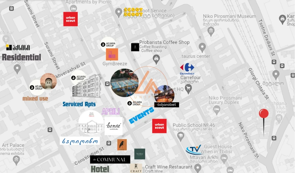 ქირავდება ცალკე მდგომი 3-სართულიანი კომერციული შენობა ეზოთი ჩუღურეთში, ნიკო ფიროსმანის სკვერთან,შენობის საერთო ფართობი შეადგენს 540 კვ.მ.-ს; კიბის უჯრედის გარეშე 520 კვ.მ. -ს (-1 სართული: 142 მ²; 1 სართული: 184 მ²; 2 სართული: 194 მ²), ხოლო დამატებით ორი ეზოს ფართობი 122 კვ.მ და 46 კვ.მ-ს. ამჟამად შენობაში მიმდინარეობს რემონტი და ბარდება ე.წ თეთრი კარკასის მდგომარეობით. ფასი არ მოიცავს დღგ-ს