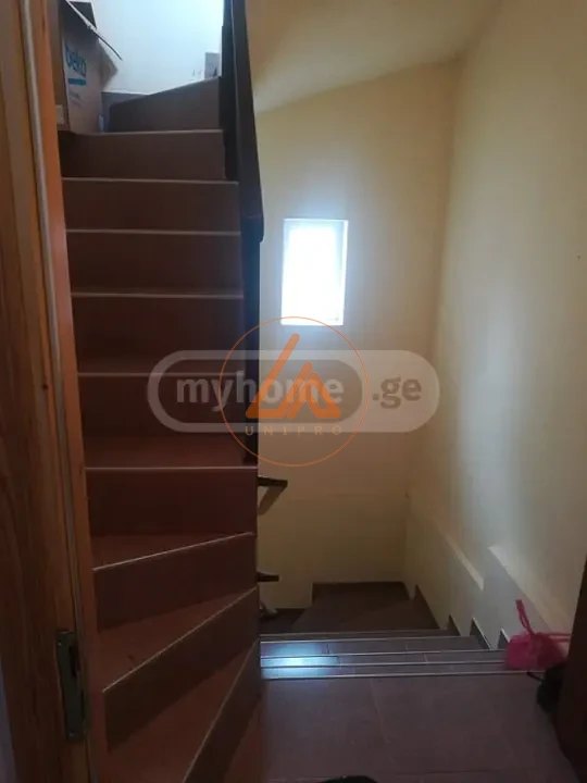 იყიდება მრგვალი ორი ნაბიჯის გადასწვრივ ორსართულიანი კერძო სახლი, პირველ და მეორე სართულზე ერთმანეთისგან გამოყოფილი იზოლირებული სამოთახიანი ბინა, ცალკ-ცალკე შესასვლელით, ორი ჰოლი, ორი მისაღები ოთახი, ორი სამზარეულო, ოთხი სველი წერტილი, ოთხი საძინებელი და ორი აივანი. სახლის სახურავზე ღია ვერანდა 110 კვ.მტ. სახლის ქვეშ სარდაფი 100 კვ.მტ. ასევე სადარბაზო, რომელშიც კიბე ადის სარდაფიდან ვერანდამდე. ორი სართულის საერთო ფართი 240 კვ.მტ. განსაზღვრულია ორი ოჯახისთვის დამოუკიდებელ საცხოვრებლად. ძალიან მარტივად და იაფად შესაძლებელია მესამე სართულის დამატება. სახლის მდებარეობა შესაძლებლობას იძლევა გამოყენებული იქნას ბიზნესისთვის. ასევე აქვს 400 კვ.მტ. გამწვანებული ხეხილიანი ეზო. მისაღებია გაცვლის შემოთავაზებაც