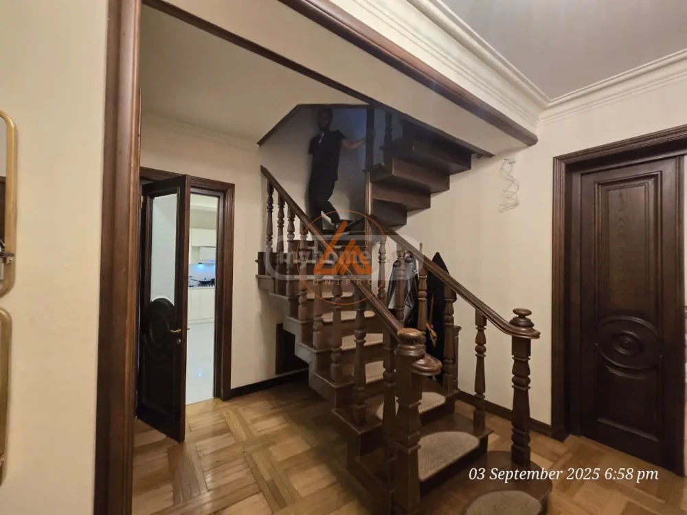 7 ოთახიანი ულამაზესი ინტერიერის ბინა, ტრიპლექსის პროექტი ხედებით იუსტიციის სახლისკენ