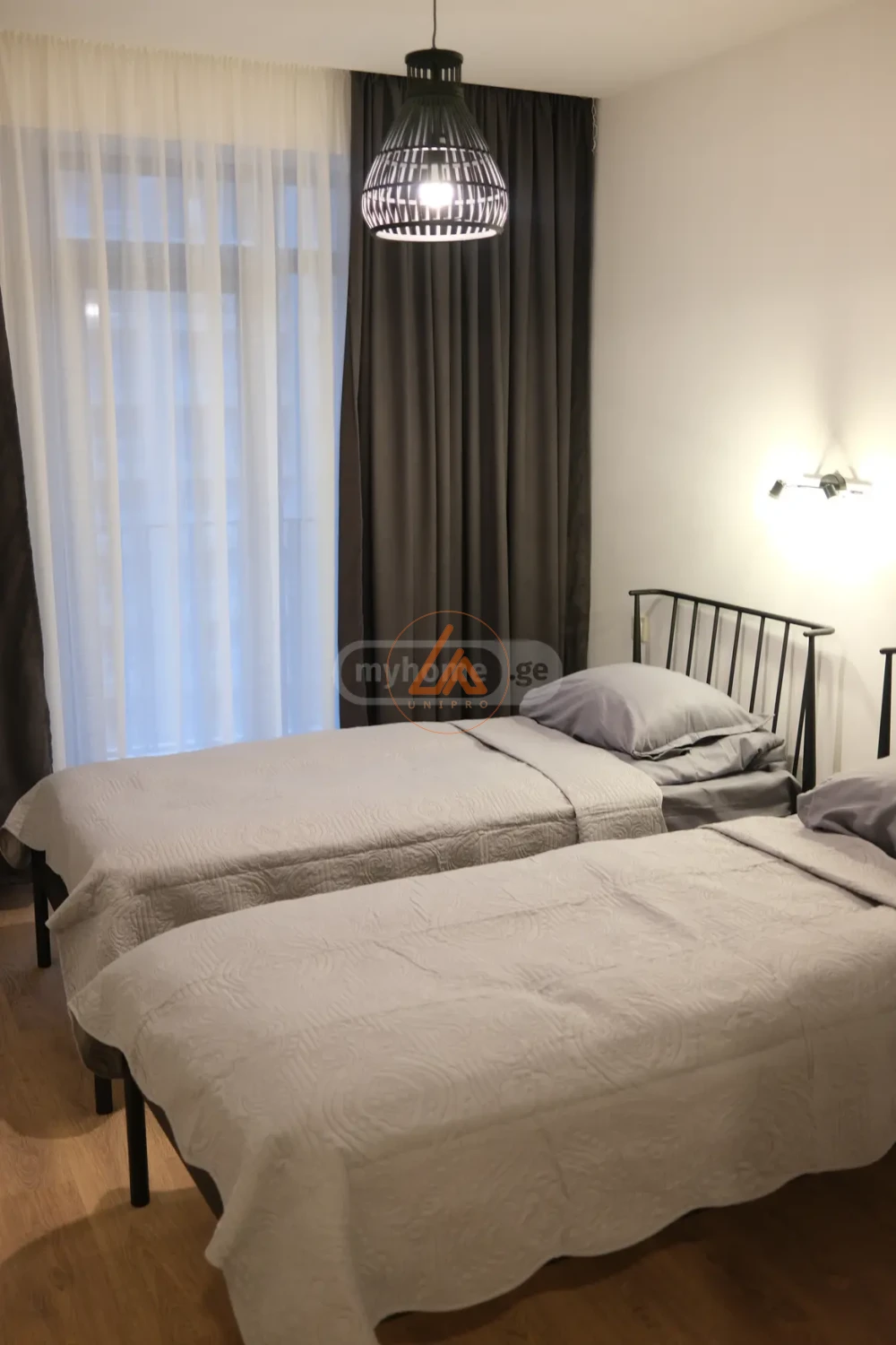 ქირავდება ახალი აშენებული ბინა 80 კვ.მ ფართობით, რომელიც მდებარეობს 15-სართულიანი კორპუსის მე-9 სართულზე. ბინაში განთავსებულია 3 ოთახი, მათ შორის 2 საძინებელი, რაც იდეალურია ოჯახისთვის ან მეგობრებთან ერთად საცხოვრებლად. ბინა გამოირჩევა თანამედროვე დიზაინითა და ახალი გარემოთი, რაც მყუდრო და სასიამოვნო ატმოსფეროს ქმნის. ფართო სივრცე უზრუნველყოფს კომფორტულ ცხოვრებას და თავისუფალ გადაადგილებას. ბინა არ აქვს აივანი, რაც კიდევ უფრო მეტ სიმყუდროვესა და სიმშვიდეს უზრუნველყოფს. ახალი შენობა უზრუნველყოფს უსაფრთხო და მშვიდ გარემოს, სადაც შეგიძლიათ იგრძნოთ თავი სახლში.