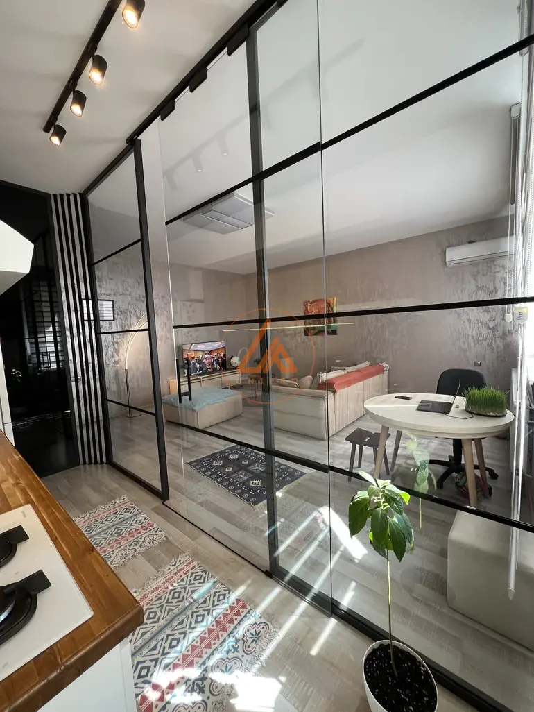 ბინა არის გამჭოლი, ნათელი, მზიანი, 2 პირველადი განათების საძინებელი, სამზარეულო გამოყოფილია ვიტრაჟებით, დიდი მისაღებით, აქ ერთი ოთახი დამატებით შეილება გამოიყენოთ როგორც კაბინეტად საძინებლად გარდერობის ოთახად არის12კვ,რჩება ავეჯი ტექნიკ