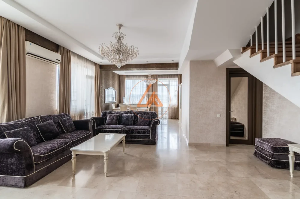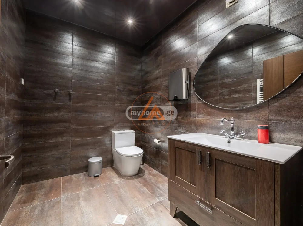 იყიდება ბინა ახალაშენებულ კორპუსში, რომელიც მდებარეობს მე-10 სართულზე 12-დან. ბინის საერთო ფართობი შეადგენს 450 კვ.მ-ს და მოიცავს 7 ოთახს, მათ შორის 3 საძინებელს, 2 მასტერბედრუმი. 5 სველი წერტილი.ბინა გამოირჩევა თანამედროვე დაგეგმარებითა და ახალი შენობის უპირატესობებით. სივრცე იდეალურია როგორც დიდი ოჯახისათვის, ასევე მათთვის, ვისაც სჭირდება მეტი ოთახი კომფორტული ცხოვრებისთვის. აქ იგრძნობთ სიმშვიდესა და თავისუფლებას, რომელიც მხოლოდ ფართო ბინას შეუძლია შემოგთავაზოთ. ბინას არ აქვს აივანი ან ლოჯია, რაც კიდევ უფრო მეტ სივრცეს ტოვებს ინტერიერში.