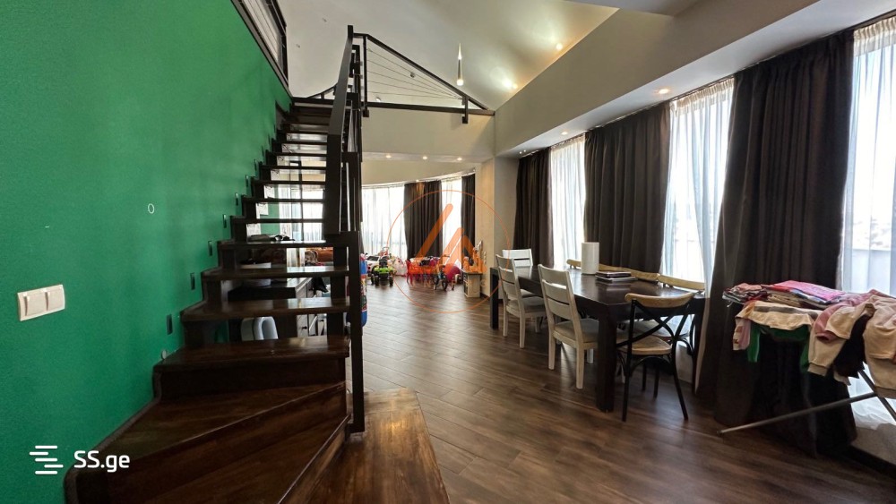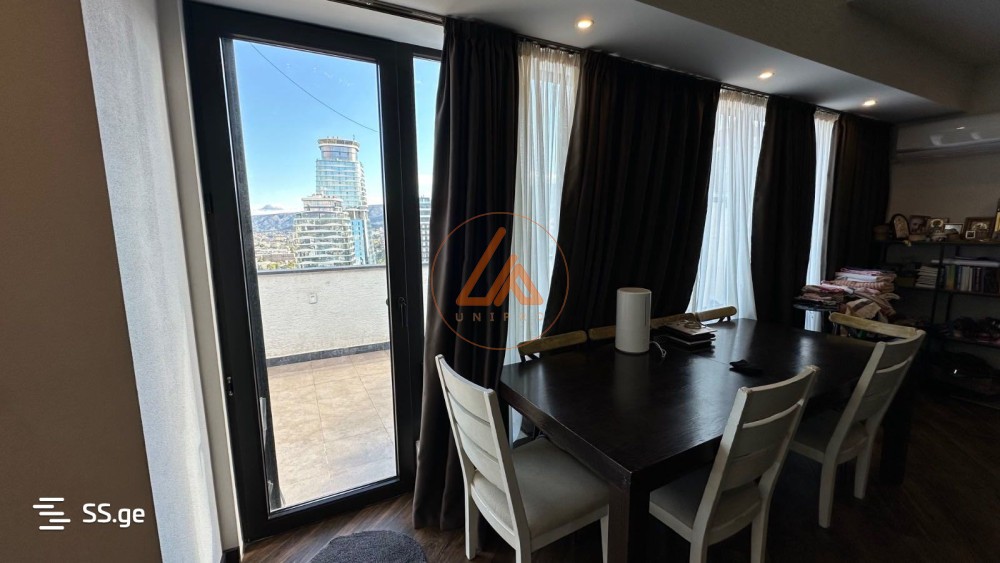 იყიდება 230 კვ.მ დუპლექს პენტჰაუსი მე-16 და მე-17 სართულებზე, პრესტიჟული „King David“ კომპლექსის მახლობლად. ბინიდან იშლება თბილისის შთამბეჭდავი პანორამული ხედები — მთაწმინდიდან მყინვარწვერამდე. ძირითადი მახასიათებლები: ფართობი და განლაგება: სივრცის მაქსიმალური შეგრძნება უზრუნველყოფილია დამოუკიდებელი სამზარეულოთი, დიდი მისაღები ოთახით ბუხრით, 1 იზოლირებული საძინებლით, 1 ღია ტიპის საძინებლით, საგარდერობე ოთახით, ჩულანით და ჰოლით. სველი წერტილები: 2 თანამედროვე, სრულად კეთილმოწყობილი სააბაზანო. გარე სივრცე: 60 კვ.მ ფართო ტერასა 6 კვ.მ სამზარეულოს აივანი 6 კვ.მ საძინებლის აივანი პრემიუმ კომფორტი: გერმანული ვიტრაჟები, იატაკქვეშა გათბობა Rehau-ს მილებით, კონდიციონერი ორივე სართულზე და ბუხარი. ენერგოეფექტურობა: თერმული იზოლაცია პოლიურეთანის ქაფით, რაც უზრუნველყოფს მაქსიმალურ კომფორტსა და ენერგოეფექტურობას. იდეალური ლოკაცია: მეტროსა და ავტობუსის გაჩერებამდე 6–10 წუთის სავალზე.