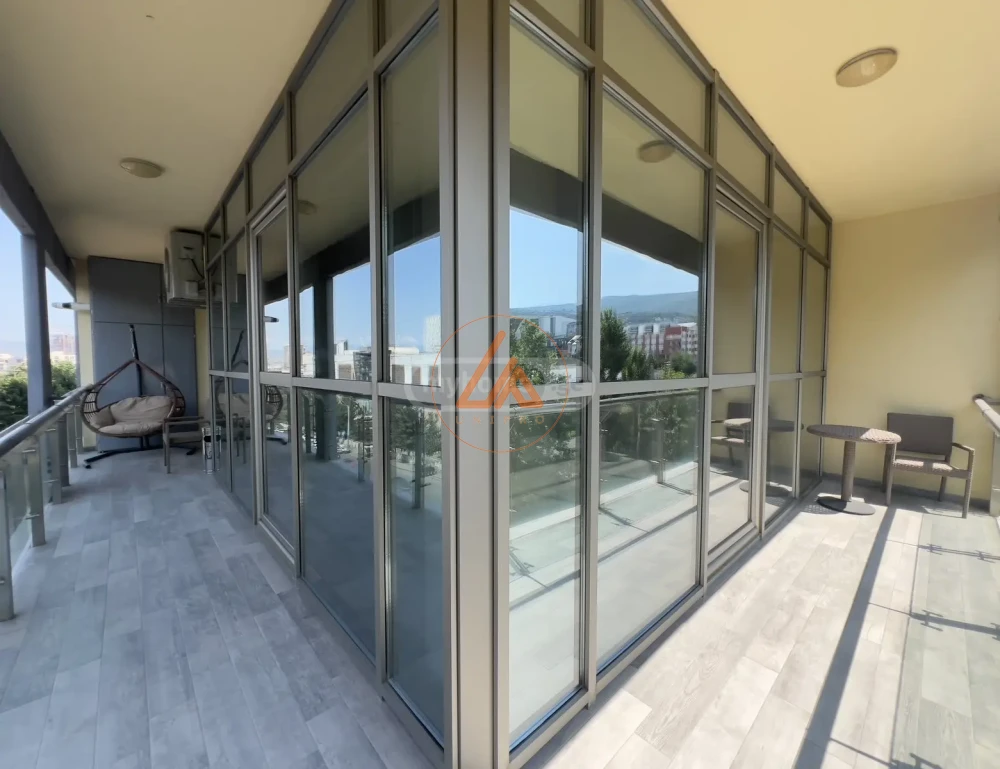 85 კვ.მეტრი, ვიტრაჟული საოფისე კომერციული ფართი, ცენტრალური გათბობით, კონდიციონერით, ავეჯითა და ტექნიკით. შემოსასვლელ კარზე დამონტაჟებულია სმარტ საკეტი. მიწისქვეშა პარკინგის ადგილით.