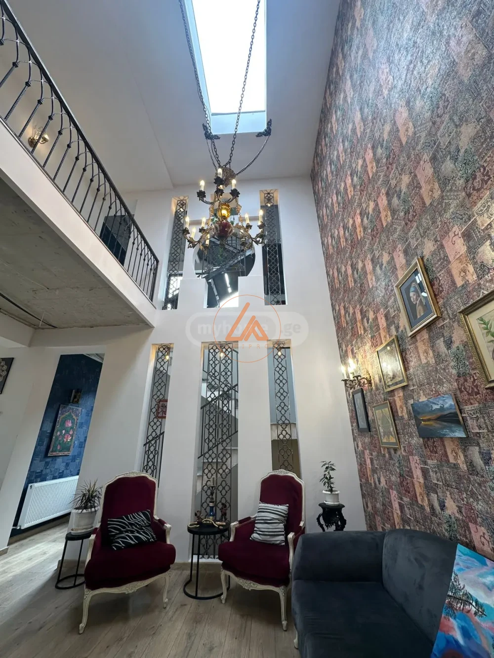 ქირავდება ძალიან განსაკუთრებული დიზაინის მქონე, სამსართულიანი კერძო სახლი რომელიც იდეალურია კომერციული მიმართულებისათვის. სახლში განთავსებულია ოთხი იზოლირებული საძინებელი, თითოეული საკუთარი სველი წერტილით, რაც მაქსიმალურ კომფორტს უზრუნველყოფს. გარდა ამისა, არის ორი ფართო სტუდიოს ტიპის მისაღები, ერთი კაბინეტი, ვიტრაჟული ფანჯრები და აივნები, საიდანაც იშლება ულამაზესი ხედები. სახლს აქვს დიდი, გამწვანებული ეზო და გამორჩეული პანორამული ხედები. სრულიად აღჭურვილია საცხოვრებლად საჭირო ყველა ინვენტარითა და თანამედროვე ტექნიკით.