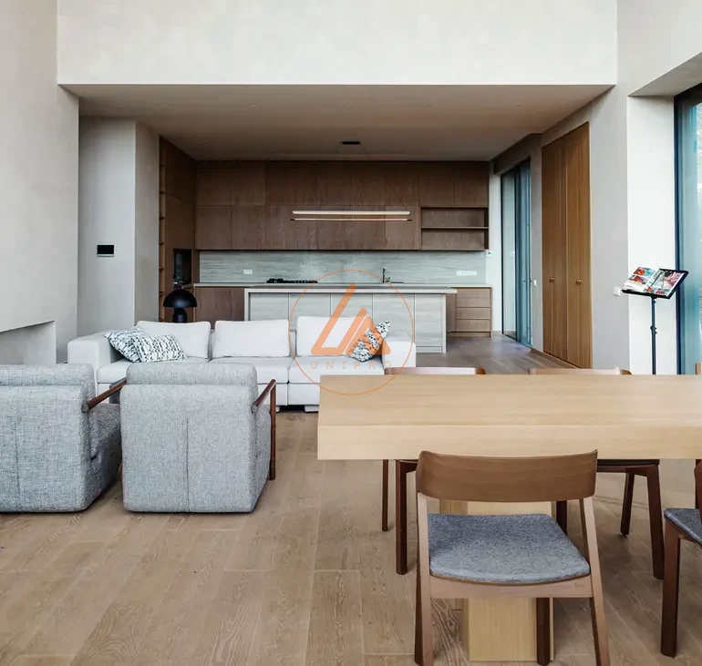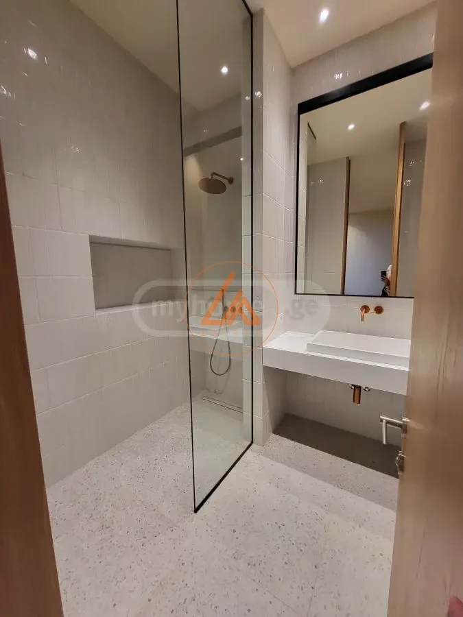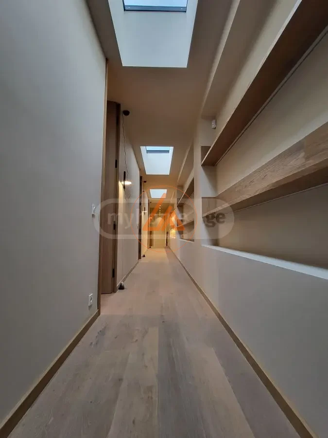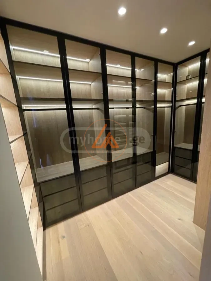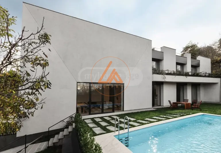 წყნეთში ნუშის ბაღებში, ერთერთ საუკეთესო ლოკაციაზე იყიდება თანამედროვე, გამორჩეული არქიტექტურისა და დიზაინის მქონე, ძვირადღირებული მასალით მოპირკეთებული სახლი აუზით. სახლი დგას 600 კვ. მიწის ნაკვეთზე. შიდა ფართია 330 კვ, ავტოფარეხი 60 კვ, ხოლო 120 კვ. არის ვერანდა და სახლის სახურავზე არსებულ ტერასა, საიდანაც იშლება არჩვეულებრივი ხედები კუს ტბის ფერდობსა და ქალაქზე. სახლი აღჭურვილია უსაფრთხოების თანამედროვე სისტემით და სათვალთვალო კამერებით. ავტოფარეხიდან შევდივართ სახლში