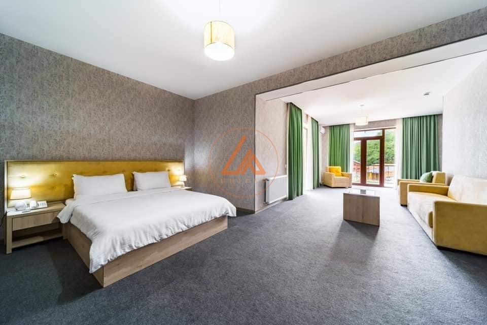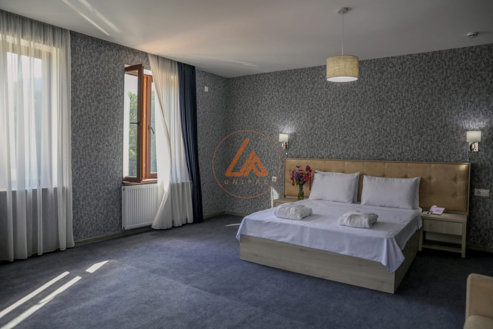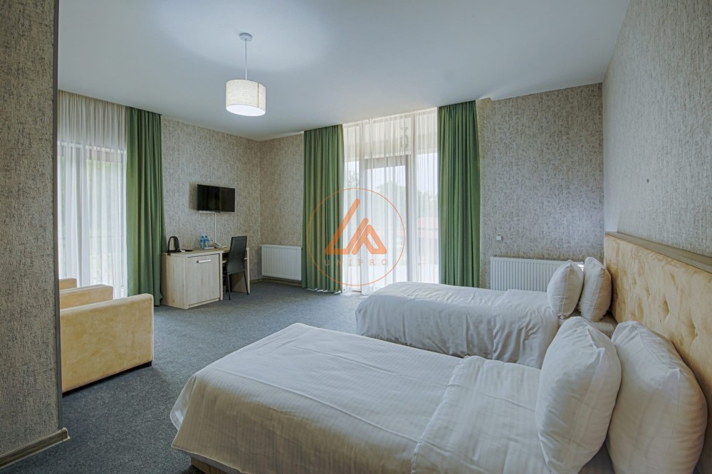 იყიდება სასტუმრო კახეთში - საინვესტიციო შესაძლებლობა იყიდება უნიკალური სასტუმრო კომპლექსი კახეთის რეგიონში. მიწის საერთო ფართობი შეადგენს 2,5 ჰექტარს. თავად სასტუმროს შენობები, კოტეჯები, ბასეინები და დასასვენებელი ზონა განაშენიანებულია 1.2 ჰექტარზე. ობიექტი მოიცავს დიდ სასტუმროს მთავარ შენობას, რომლის ფართობი 3000 კვ.მ-მდეა. დამატებით არის 4 დამოუკიდებელი კოტეჯი, თითოეული 50 კვ.მ. ფართობით. ტერიტორიაზე მდებარეობს კახური რესტორანი, 100 კვ.მ., რომელიც გათვლილია 70 სტუმარზე და იდეალურია ღონისძიებებისა და ღვინის ტურიზმისთვის. სასტუმროს აქვს დიდი საცურაო აუზი (20მ x 11მ) და ცალკე საბავშვო აუზი (8მ x 4მ). ასევე განთავსებულია რუსული აბანო და დამატებით ერთი დაუსრულებელი შენობა, რაც იძლევა განვითარების დიდ პოტენციალს (სპა, დამატებითი ნომრები, საკონფერენციო სივრცე და ა.შ.). ობიექტი წარმოადგენს იდეალურ საინვესტიციო შესაძლებლობას კახეთში - საქართველოს ერთ-ერთ ყველაზე მოთხოვნად ტურისტულ და საინტერესო რეგიონში. დეტალური ინფორმაციისთვის დაგვიკავშირდით ნომერზე: 557 99 09 09. Hotel for Sale in Kakheti – Prime Investment Opportunity A unique hotel complex is offered for sale in the Kakheti region, one of Georgia’s most sought-after tourist destinations. The total land area is 2.5 hectares, with 1.2 hectares developed with hotel buildings, cottages, pools, and recreational zones. The property includes: A main hotel building of approximately 3,000 sq.m 4 independent cottages, each 50 sq.m A traditional Kakhetian restaurant (100 sq.m) designed for up to 70 guests, ideal for events and wine tourism A large swimming pool (20m x 11m) and a separate children’s pool (8m x 4m) A Russian-style bathhouse An additional unfinished building offering significant development potential (spa, extra rooms, conference space, etc.) This property represents an excellent investment opportunity in Kakheti, a region renowned for tourism, wine culture, and high visitor demand. For detailed information, please contact: +995 557 99 09 09.